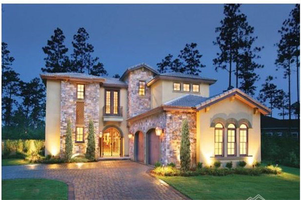 再說輕鋼別墅的法式風(fēng)格,封面的大宅子就是法式。法式建筑講究點綴在自然中,并不在乎占地面積的大小,追求色彩和內(nèi)在聯(lián)系,讓人感到有很大的活動空間。法式建筑線條鮮明,凹凸有致,尤其是外觀造型獨特,大量采用斜坡面,顏色穩(wěn)重大氣,呈現(xiàn)出一種華貴。(如下圖)