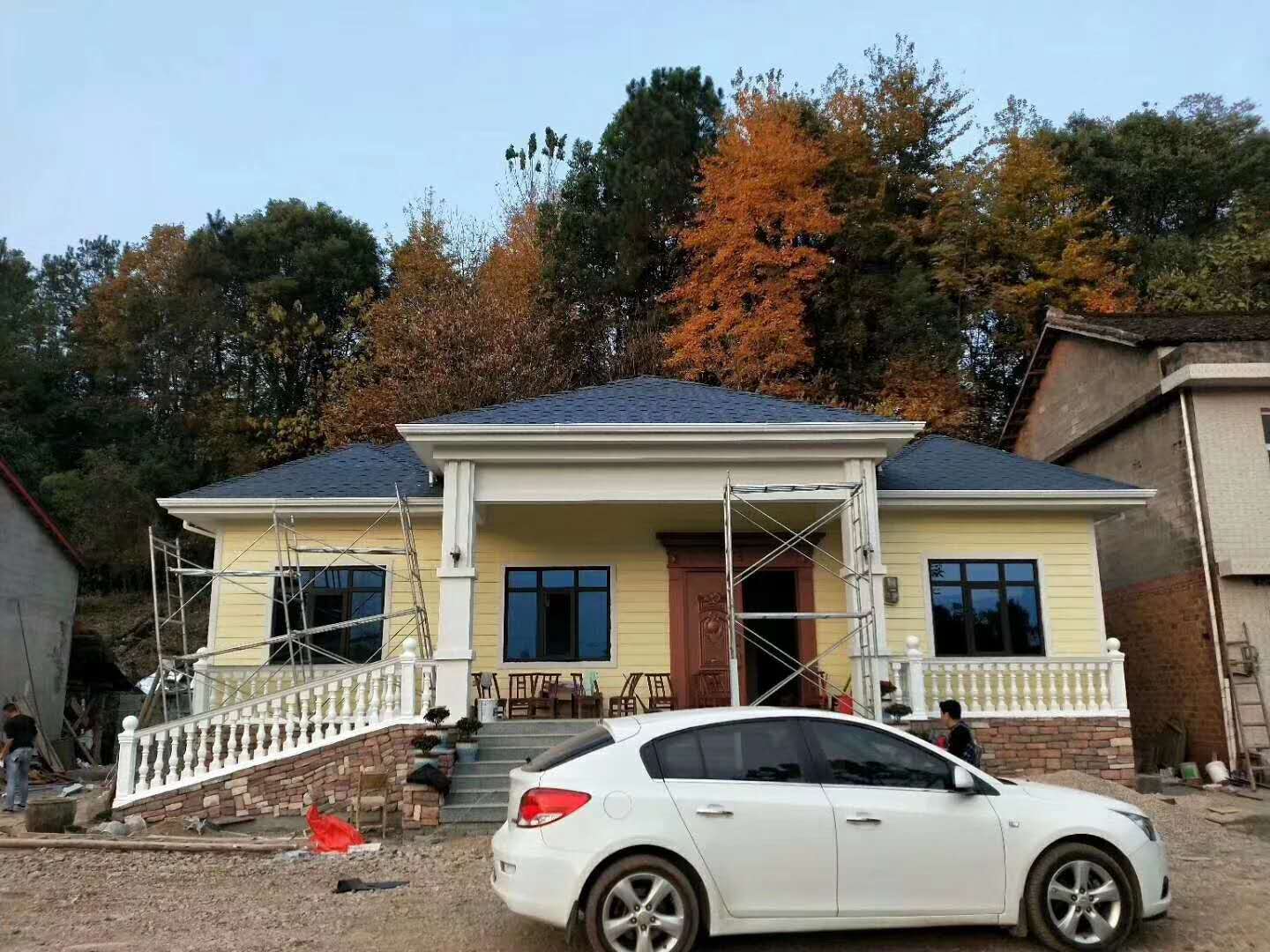 第二套要推薦的是一棟典型的美式風(fēng)格的別墅,雖然只是一層,但是氣勢(shì)完全不輸兩層的房屋,左右對(duì)稱,布局工整,適合喜歡有堂屋的朋友選擇,外觀顏色為米黃色,給人樸實(shí)中帶著大氣的感受,左右兩邊對(duì)稱凸出的窗戶是整個(gè)房子的設(shè)計(jì)亮點(diǎn),使整棟廣元輕鋼別墅的外觀顯得不平庸。